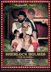 Vom 14.-16. März 2025 haben wir mit dem Stück SHERLOCK HOLMES: TOD IM NEBEL ein Kriminalstück auf die Bühne des Theatersaals am Gymnasium Alfeld gebracht.